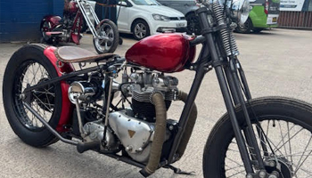 bobber triumph 650 1957 pre unit rigid hand change flake paint show standard £6,999 |