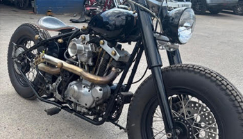Bobber Harley Davidson 1200 rigid , professional build custom frame , springer forks , brass detail , forward controls, show standard bike £6999 |
